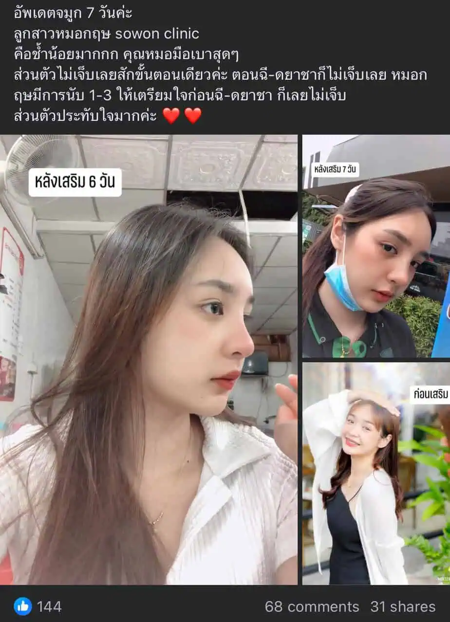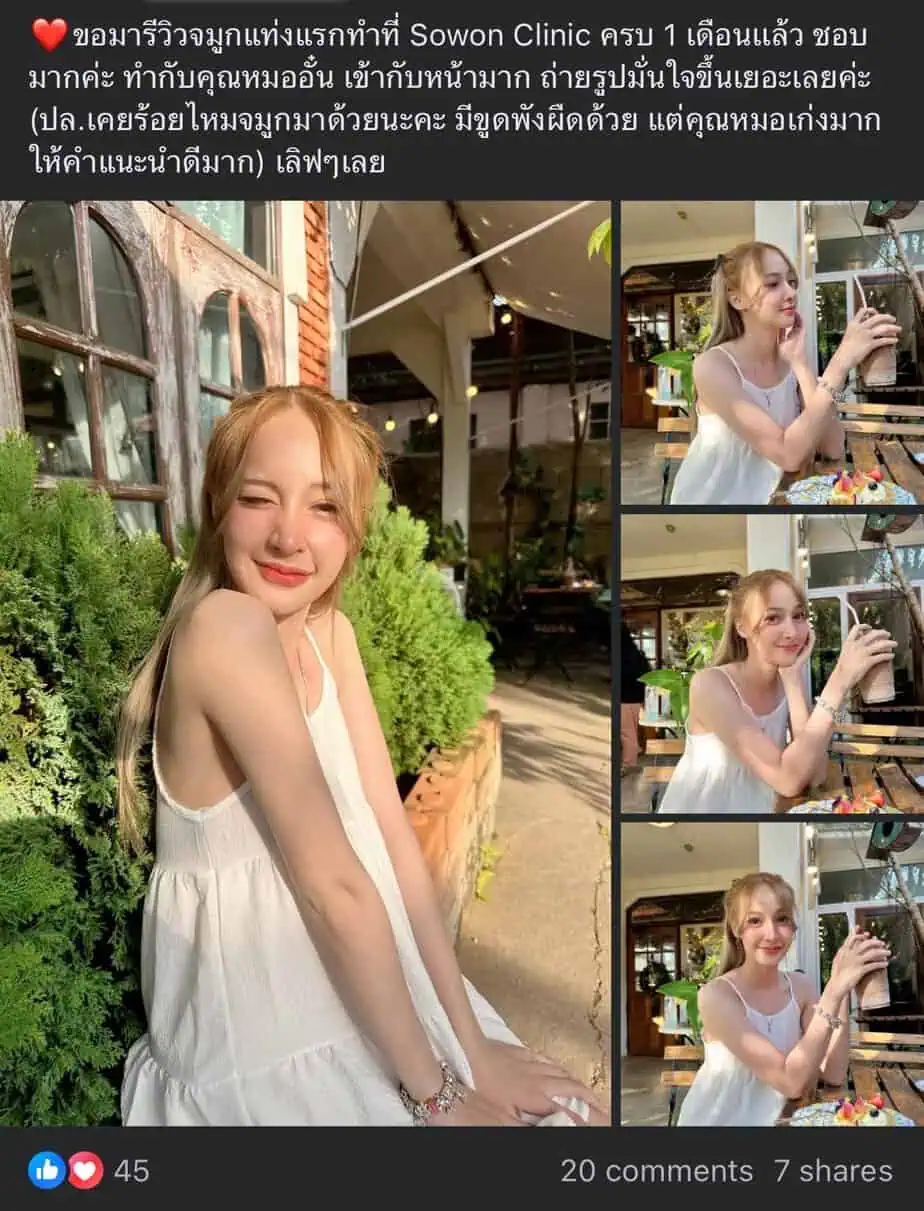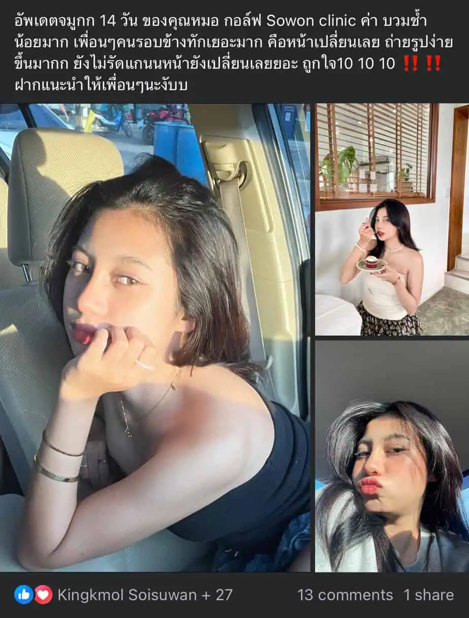 รีวิวเสริมจมูกสโลปปลายพุ่ง ที่ Sowon Clinic